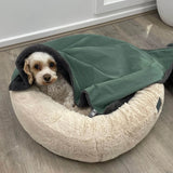 Louie and owner Molly love the Dreameazzzy Cuddler Bed!